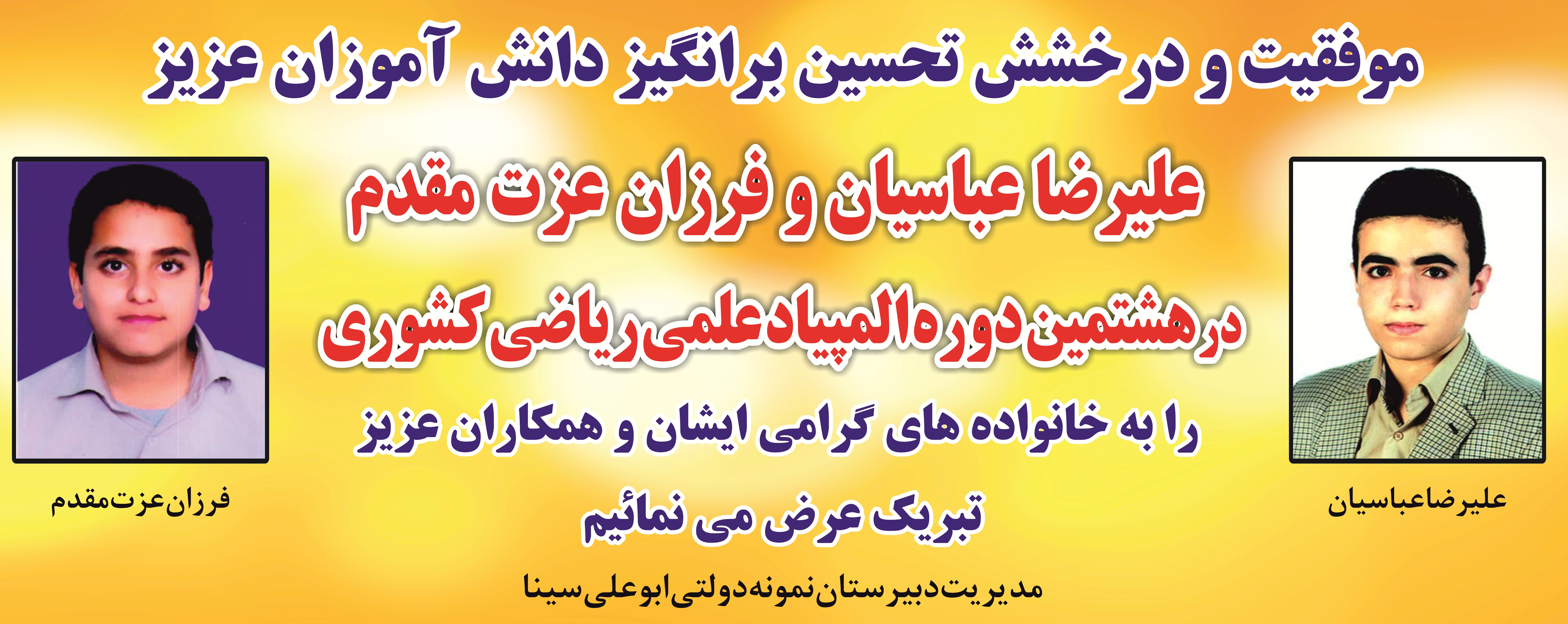 1- قبولی علیرضا عباسیان و فرزان عزت مقدم درهشتمین دوره المپیاد علمی ریاضی کشوری